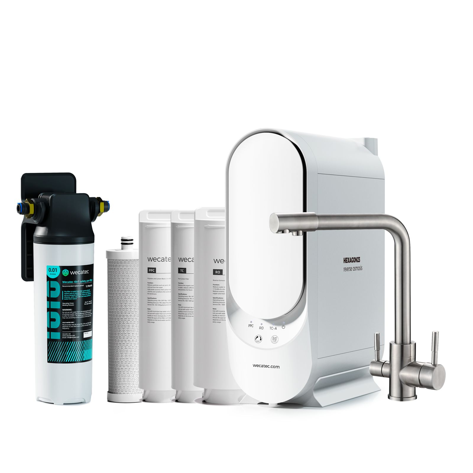 - Anlage (Farbe weiss) inkl. Kombifilter 3in1, Membrane RO 800 GPD, Nachfilter 2in1.